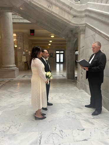 The Wright Way's officiant services include an initial consultation to discuss your ceremony vision, personalized ceremony script creation, rehearsal coordination (if requested), and officiating your ceremony on your wedding day.
